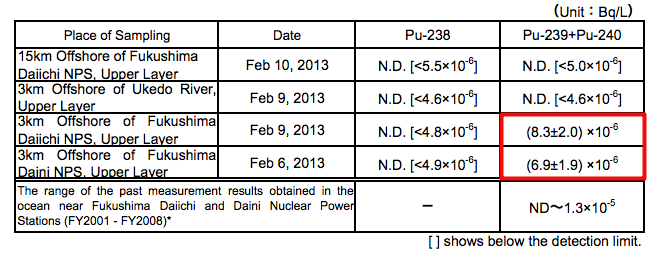 Plutonium-239/240 measured from 3km offshore of Fukushima Daiichi and Daini, Tepco “Within normal range”